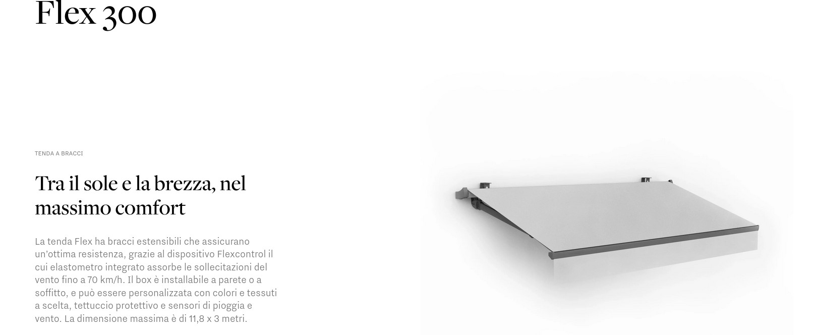 Tenda a bracci estensibili, contraddistinta da una coppia di supporti specifici alle due estremità. Un prodotto dalle buone prestazioni, preassemblabile a banco, che permette di ridurre i tempi di posa in opera.